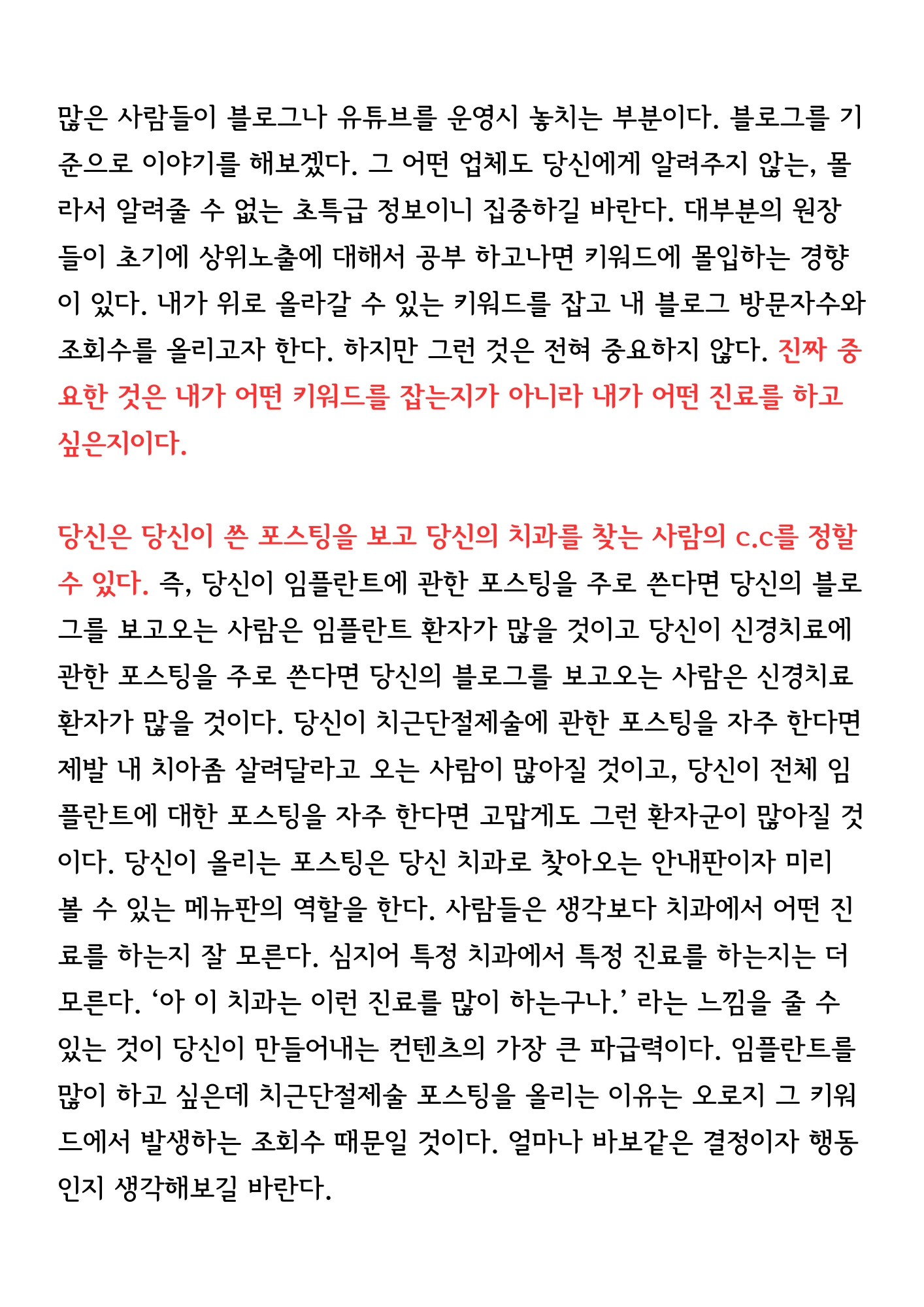 이 내용을 아는 것 만으로도 이미 다른 일반적인 대표원장들과는 다른 차원으로 들어서게 됩니다.